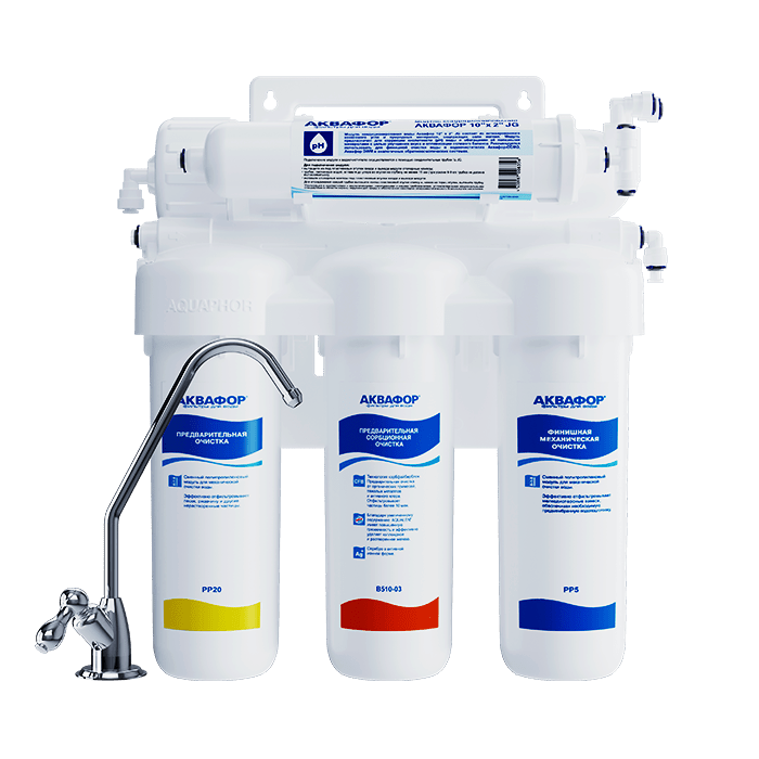 Аквафор Осмо 50 исп. 5 эффективно умягчает воду и борется с бактериями. Свободно используйте чистую воду для питья, кулинарии, детского питания и домашней бытовой техники.